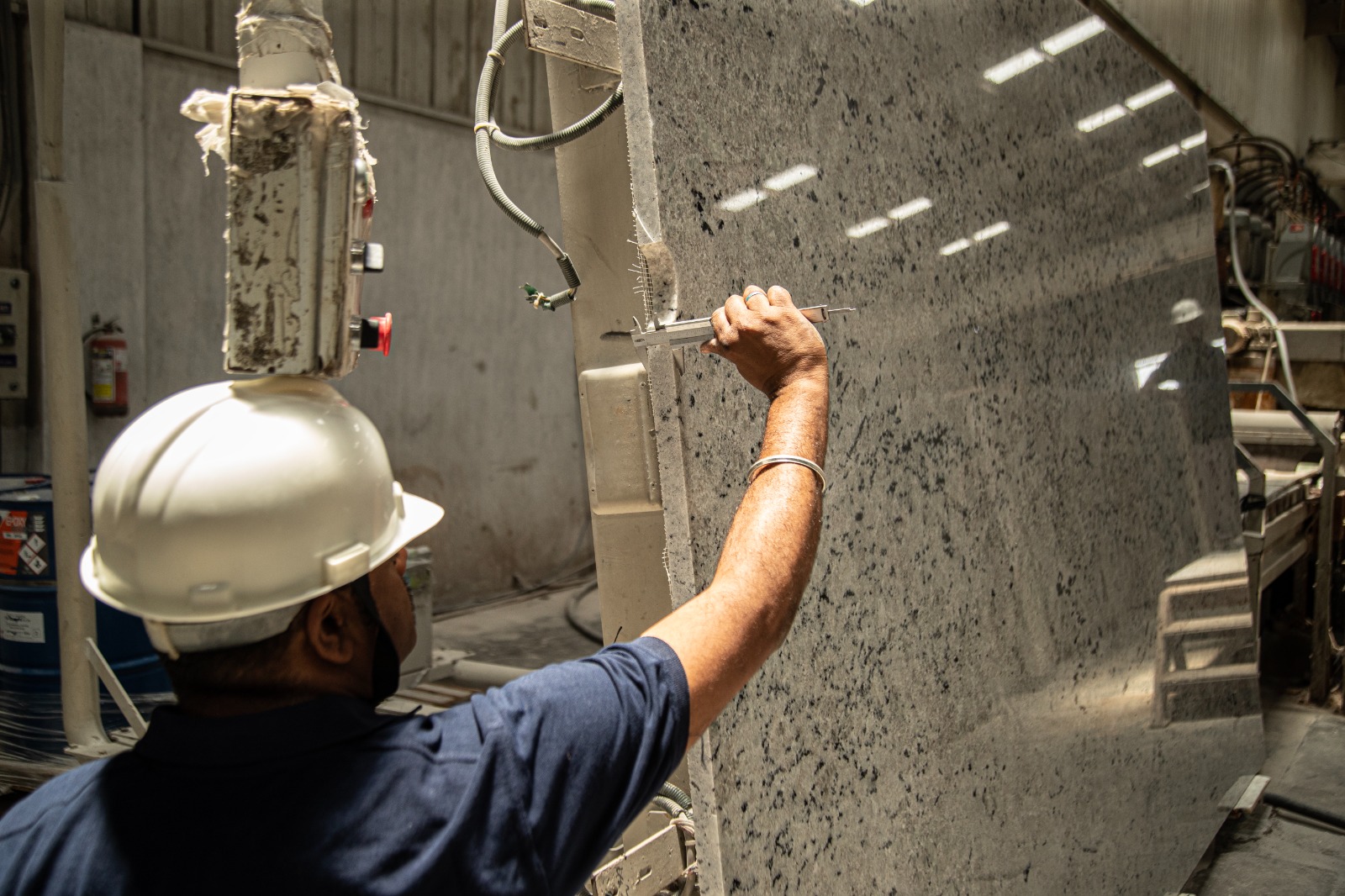 - Slabs undergo treatment in our Breton Resin machine for durability and beauty.